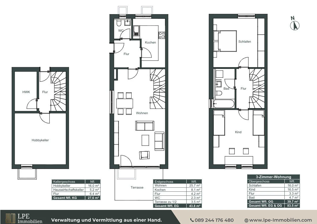 Auf ca. 111,1 m² Wohn-/Nutzfläche bei ca. 83,5 m² Wohnfläche verteilt sich diese 3-Zimmer-Wohnung über zwei Ebenen (Erdgeschoss und Obergeschoss) und begeistert mit Garten, Einbauküche sowie einem eigenen Untergeschoss inklusive ausgebautem Hobbyraum.