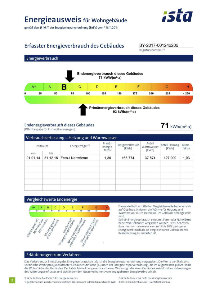 • Energieeffizienzklasse B, 71 kWh/(m²·a), Fern-/Nahwärme