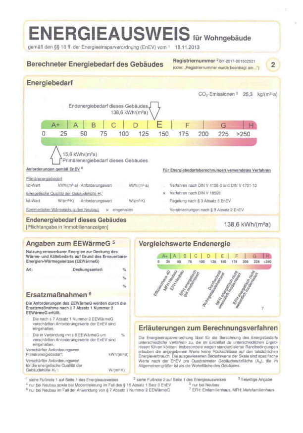 - Endenergiebedarf 138,6 kWh/(m²·a)