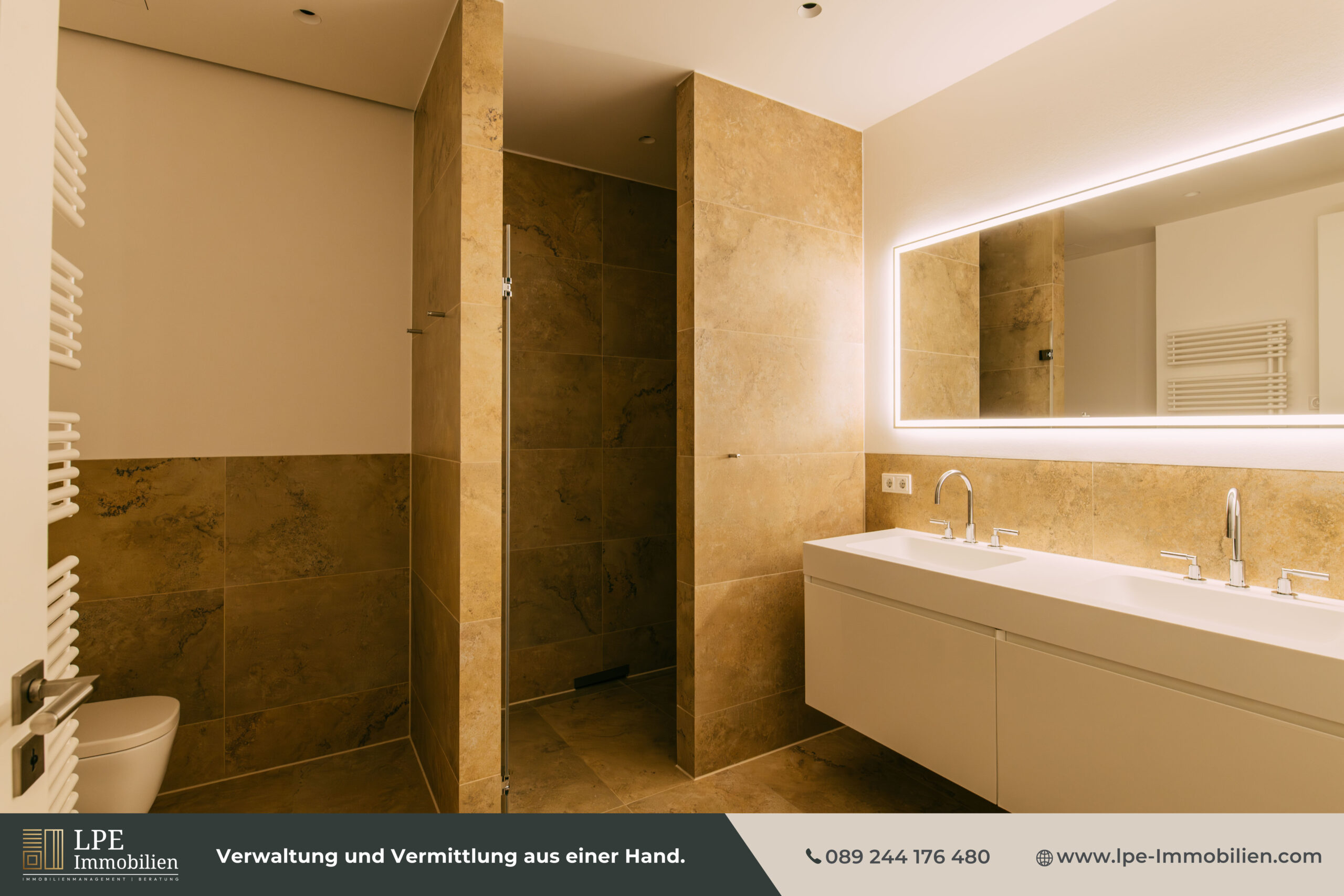 Zwei luxuriöse En-Suite-Bäder – klar in der Linienführung, hochwertig in den Armaturen – schenken Ihnen jeden Tag ein Boutique-Hotel-Gefühl.