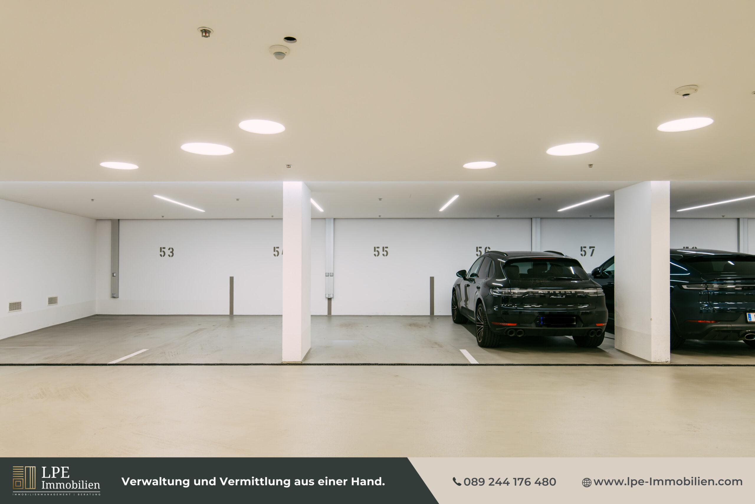 Ein Tiefgaragenstellplatz mit direktem Hauszugang sowie ein großzügiger Kellerraum mit Strom und Beleuchtung runden das Angebot ab.